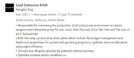 På sidan av en av de anställda i studion Naughty Dog, hittade intressant information. Mark Pajarillo, som är ansvarig för kommunikation och interaktion med outsourcers, nämnde i sin Linkedin-profil ett projekt som heter The Last of Us 2: Remastered.