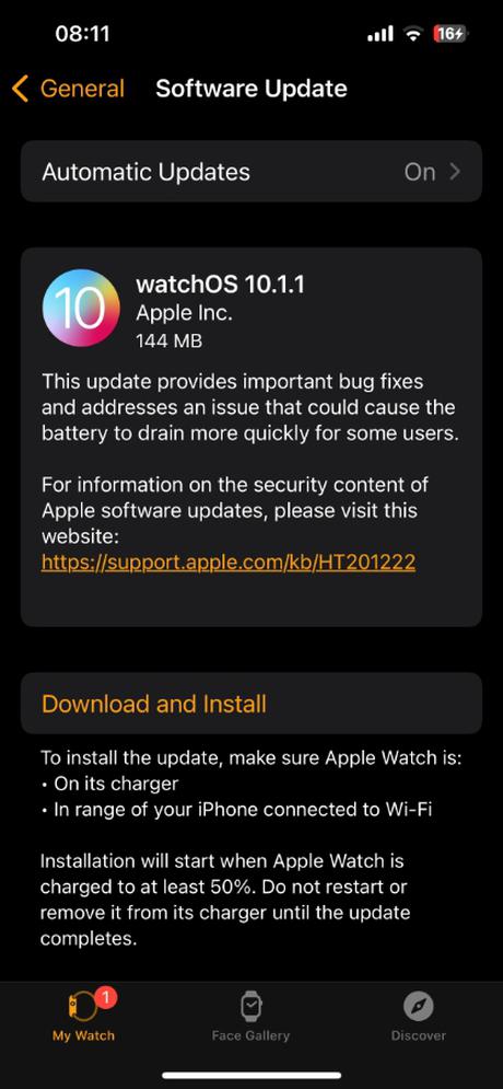 Den nya versionen av programvaran kom ut med numret watchOS 10.1.1.1. Den inbyggda programvaran väger 144 MB. Systemet kan redan installeras av användare av Apple Watch-modeller som stöds. Du kan kontrollera närvaron av OTA i Watch-appen på iPhone.