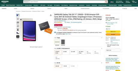 Vi pratar om Samsung Galaxy Tab S9 surfplatta. Den kan nu köpas med en 256 GB-enhet för check price on amazon ner från check price on amazon$, en rabatt på check price on amazon. Förresten kommer enheten med ett Amazon-presentkort på $ 100.