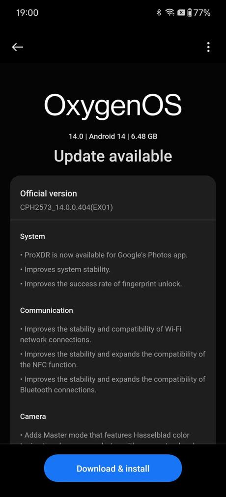 Informationen delades av våra kollegor från Android Authority. Den fasta programvaran har släppts med byggnumret Oxygen OS v14.0.0.0.404 (EX01). Systemet väger 6,48 GB och det har redan börjat rulla ut till enheter.