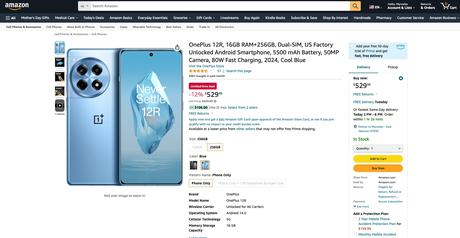 Vi pratar om OnePlus 12R med 256 GB lagring. Gadgeten är prissatt till check price on amazon 599 check price on amazon. Det finns två färger tillgängliga, grå och blå.