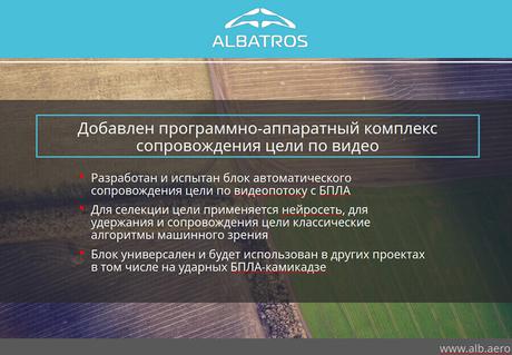 En del av presentationen kommer att fokusera på implementeringen av maskinvisionsfunktionalitet med hjälp av det neurala nätverket, vilket automatiserade processen för att söka, välja och spåra upptäckta mål. Det maskinsynssystem som skapades i samarbete med Kaspersky Lab integrerades i spaningsdrönaren Albatross M5.