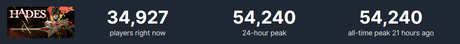 Vi skrev att Hades II satte online-toppen den första dagen dubbelt så högt som den första delen. Men spänningen för uppföljaren hade också en inverkan på den första delen, eftersom den också hade en ny online-topp.