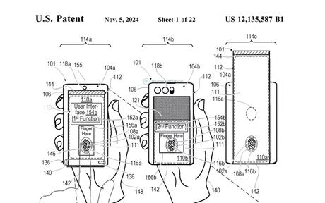 Patentet beskriver hur autentiseringssystemet kan integreras i en rörlig skärm, vilket gör att användarna inte bara kan ändra storleken på skärmen utan också enkelt låsa upp telefonen från var som helst på skärmen.