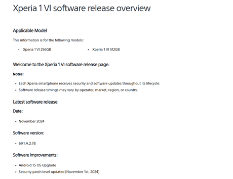 Användare av Sony Xperia 1 VI har börjat få en uppdatering till Android 15 med den senaste säkerhetsuppdateringen