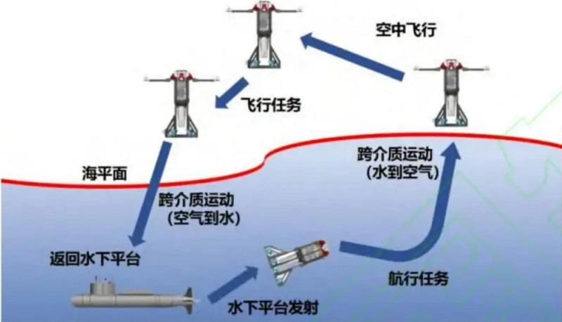 Kina har utvecklat ett unikt obemannat system, Feiyi, som skjuts upp i luften från en ubåt och kommer ut igen