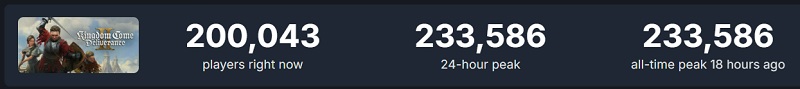 På lanseringsdagen var Kingdom Come: Deliverance II: s topp online i Steam översteg 159 tusen människor, men det var en tisdag, så det förväntades att på helgen i medeltida Bohemia kommer att vara mycket fler besökare. Och så hände det: under de senaste 24 timmarna nådde online 233 586 spelare.