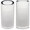 This compact appliance has a cylindrical shape with a white body, which makes it easy to fit into any interior. The model has an ultra-slim profile that saves space in the room.