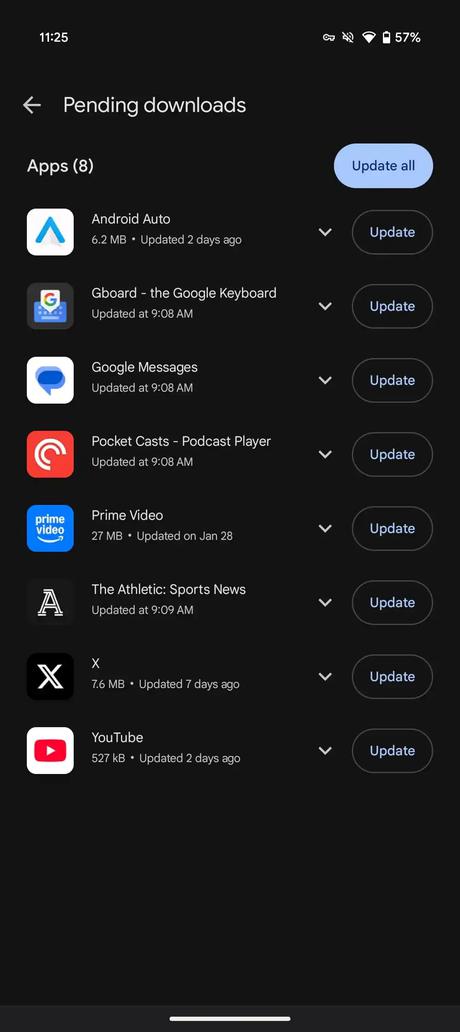 Våra kollegor på 9to5Google har märkt att deras appar som Gboard, Google Messages, Pocket Casts och The Athletic visar upprepade tillgängliga uppdateringar. Dessa appar laddar ner en liten mängd data - mellan 1 MB och 2 MB - men medför inga ändringar eftersom den senaste versionen redan är installerad på enheten.