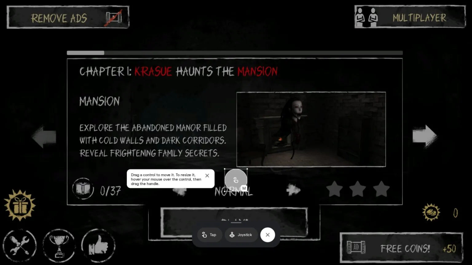 Invisible buttons and joysticks can now be added that mimic keystrokes and key movements. The default motion controls are WASD and arrow keys.