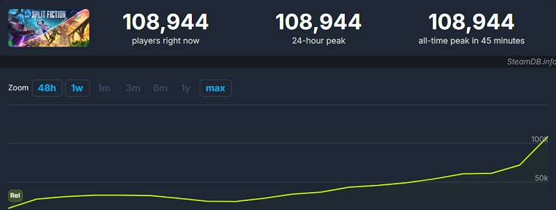 Peak online Split Fiction i Steam närmar sig 110 tusen personer, och helgen är den perfekta tiden att spela det här spelet.
