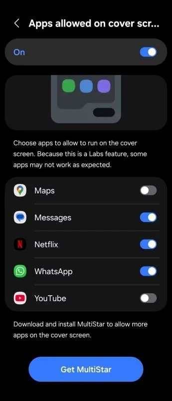 För att lägga till fler appar på den externa skärmen var användarna tidigare tvungna att gå igenom några ytterligare steg, inklusive nedladdning av Good Lock, installation och konfiguration av MultiStar-modulen och andra inställningar. Samsungs programvara uppmanade inte användare om dessa steg.
