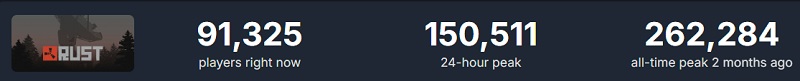 Många år har gått sedan lanseringen av Rust, men det här spelet är fortfarande mycket populärt. Således, i Steam under de senaste 24 timmarna var toppen online 150 tusen människor.