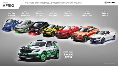 För referens baserades den nionde Škoda studentbilen på den elektriska Škoda Enyaq, som omvandlades till en elektrisk husbil med ett mobilt kontor. Det projektet kallades Roadiaq.