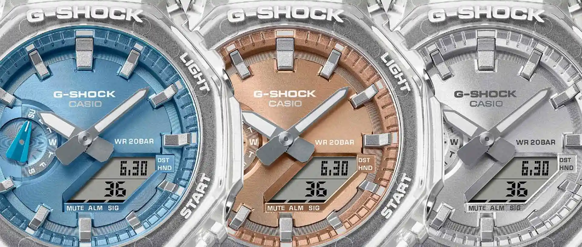 Casio har lanserat försäljning av den nya genomskinliga flerdelade GA-2100BM-klockan i Europa