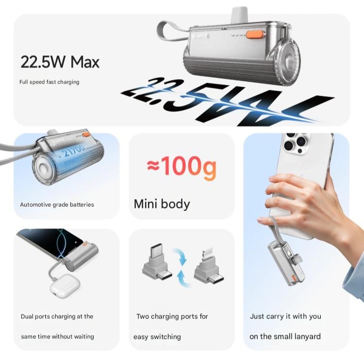 Batteriet stöder snabbladdning tack vare protokoll som QC3.0, PD3.0, FCP och AFC. Precis som sin föregångare har Mini 2 ett 5000 mAh batteri och behåller sin kompakta storlek: 79,4 x 25,8 x 33,5 mm och väger cirka 100 g. Designen av enheten är transparent och det finns två färgversioner tillgängliga: silver och svart.