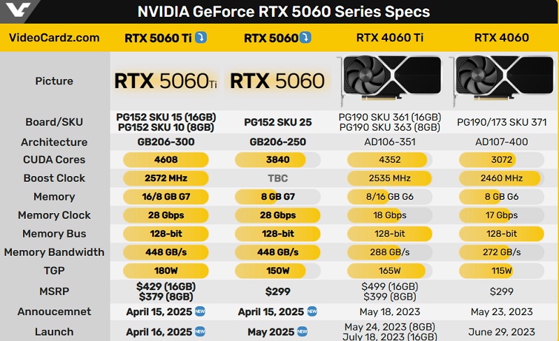 Insiders har länge rapporterat om den kommande lanseringen av RTX 5060 och RTX 5060 Ti, så deras specifikationer kommer inte att överraska de användare som noggrant följer nyheterna, inklusive på vår webbplats.