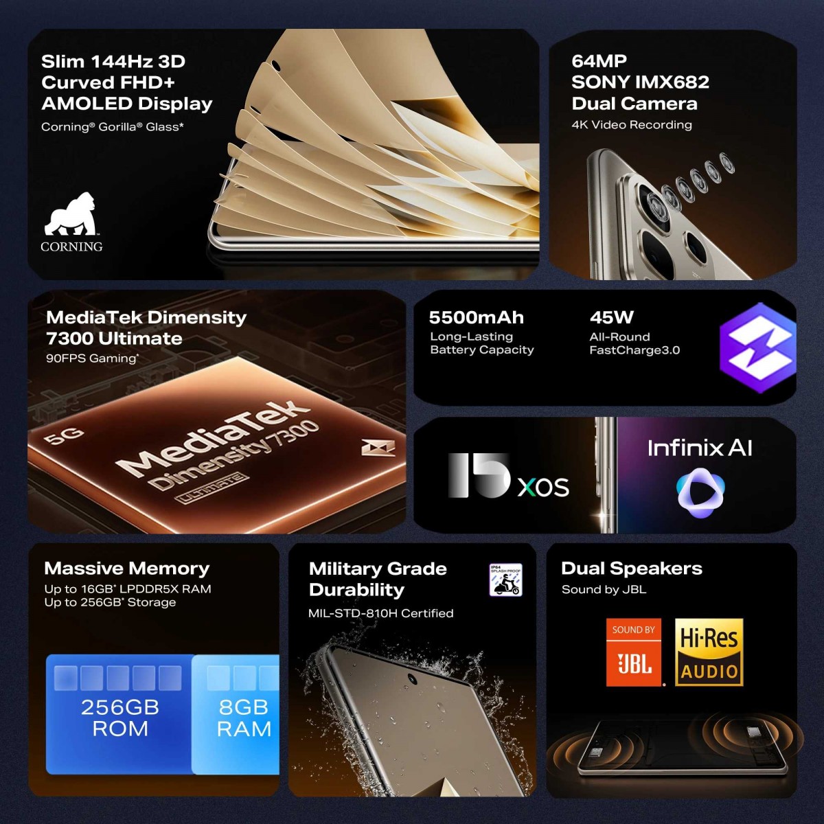 Nyckelspecifikationer för Infinix Note 50s 5G+ smartphone. Illustration: Infinix