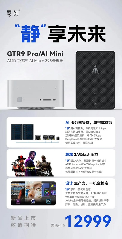 GTR9 Pro/AI Mini fick en AMD Ryzen AI Max+ 395-processor med en beräkningskapacitet på 126 TOPS och ett integrerat Radeon 8060S-grafikkort med 40 kärnor, vilket är jämförbart med RTX 4060.