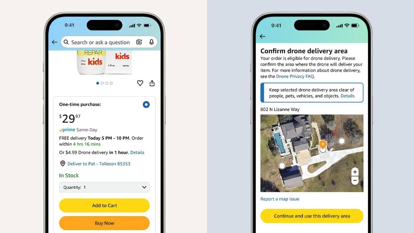 Amazon har officiellt börjat leverera Apple-produkter - inklusive iPhones, AirPods och AirTags - med hjälp av drönare. Tjänsten finns tillgänglig för invånare i College Station (Texas) och West Valley i Phoenixområdet (Arizona).
