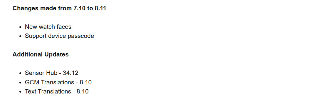 Tre relaterade uppdateringar nämns separat: Sensor Hub (v34.12), GCM Översättningar och Textöversättningar (båda v8.10). Även om de exakta fördelarna med dessa förändringar ännu inte har avslöjats, är det troligt att de kommer att förbättra stabilitet och lokalisering.