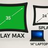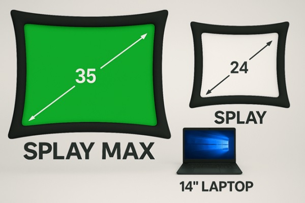 Splay Max väger bara 1,6 kg, fungerar i upp till 5 timmar utan att laddas och kan kopplas till en bärbar dator, smartphone eller spelkonsol via USB-C och HDMI. Inuti finns inbyggda högtalare och ett kraftfullt batteri.