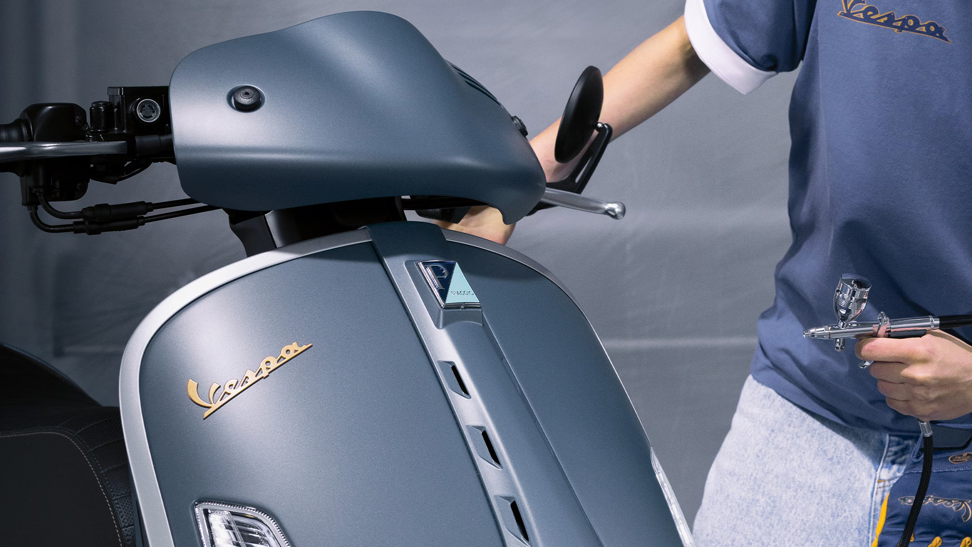 Vespa Officina 8 är målad i matt "Blu Officina 8"-färg, och pryds av dekorativa element i aluminium och brons. Utbudet inkluderar Primavera 50 SE, Primavera 150 SE och GTV 310 Special Edition-modifikationer. De kommer att släppas på olika marknader runt om i världen, liksom de flesta Vespas.