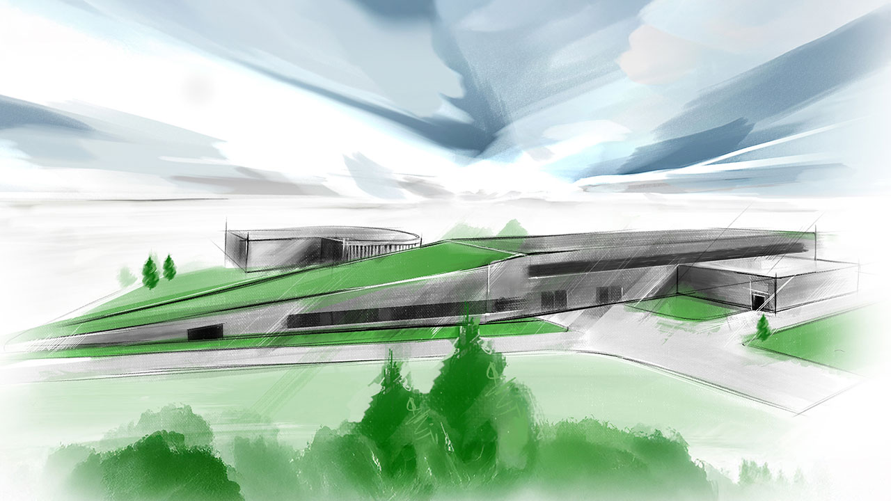 Den framtida byggnaden kommer att vara låg och avlång - 132 meter lång och bara 25 meter bred. Enligt designen stiger taket försiktigt ur landskapet och 30 procent av dess yta är vildgräs. Istället för massiva betongstrukturer kommer glasväggar att ge naturligt ljus och göra interiören mer behaglig för både arbetare och kunder som kommer för att se sin bil monteras.