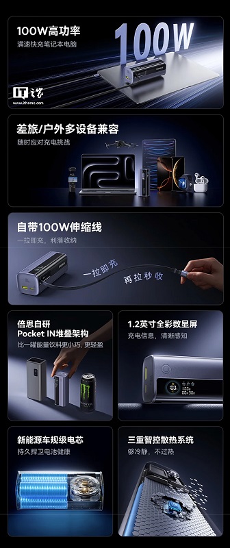 Detta är möjligt tack vare det 10000 mAh batteriet och 100W utgångseffekt.
