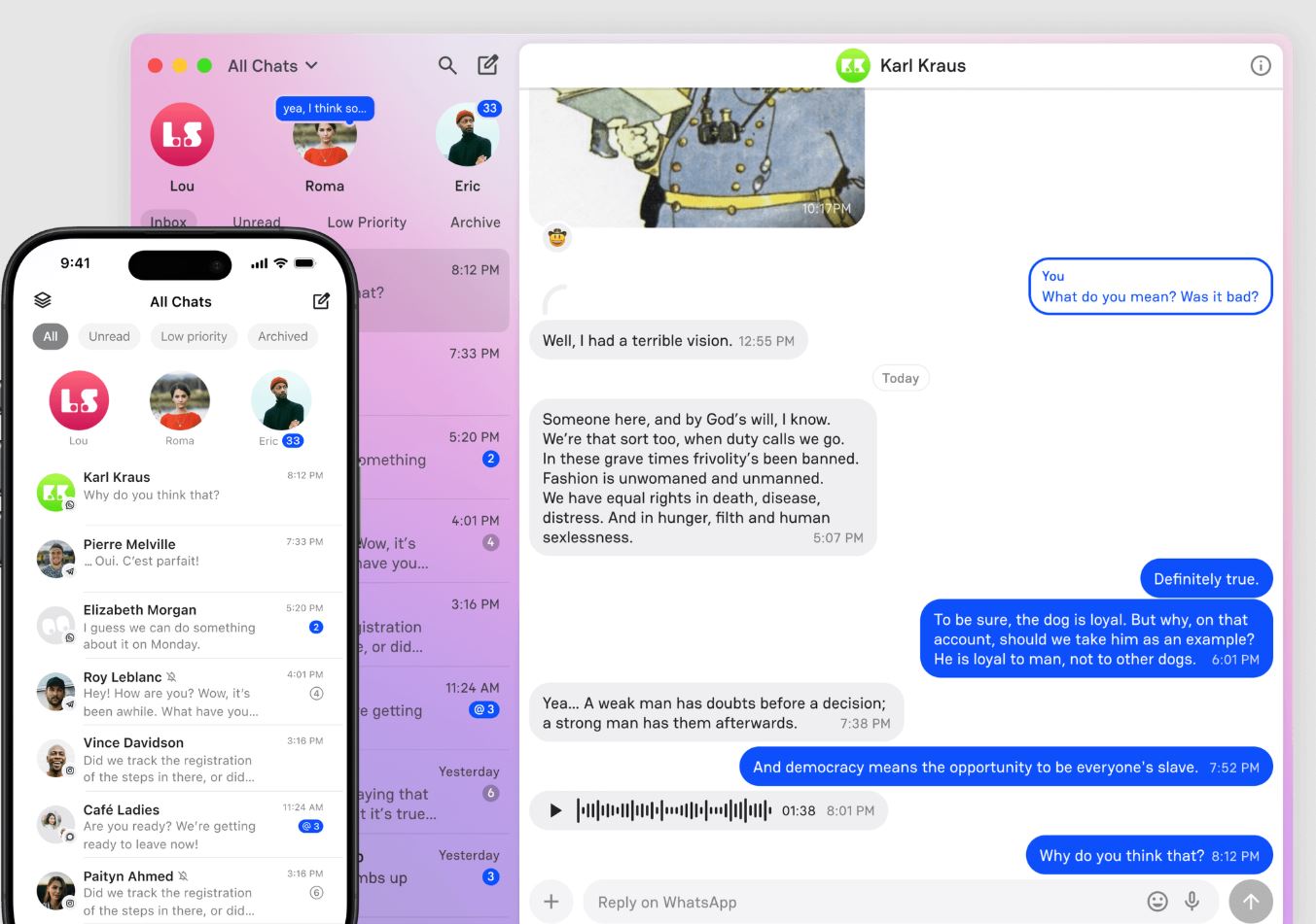 - Anslut upp till 5 meddelare samtidigt, inklusive WhatsApp, Telegram, Signal, Instagram, Messenger, X (Twitter) och fler