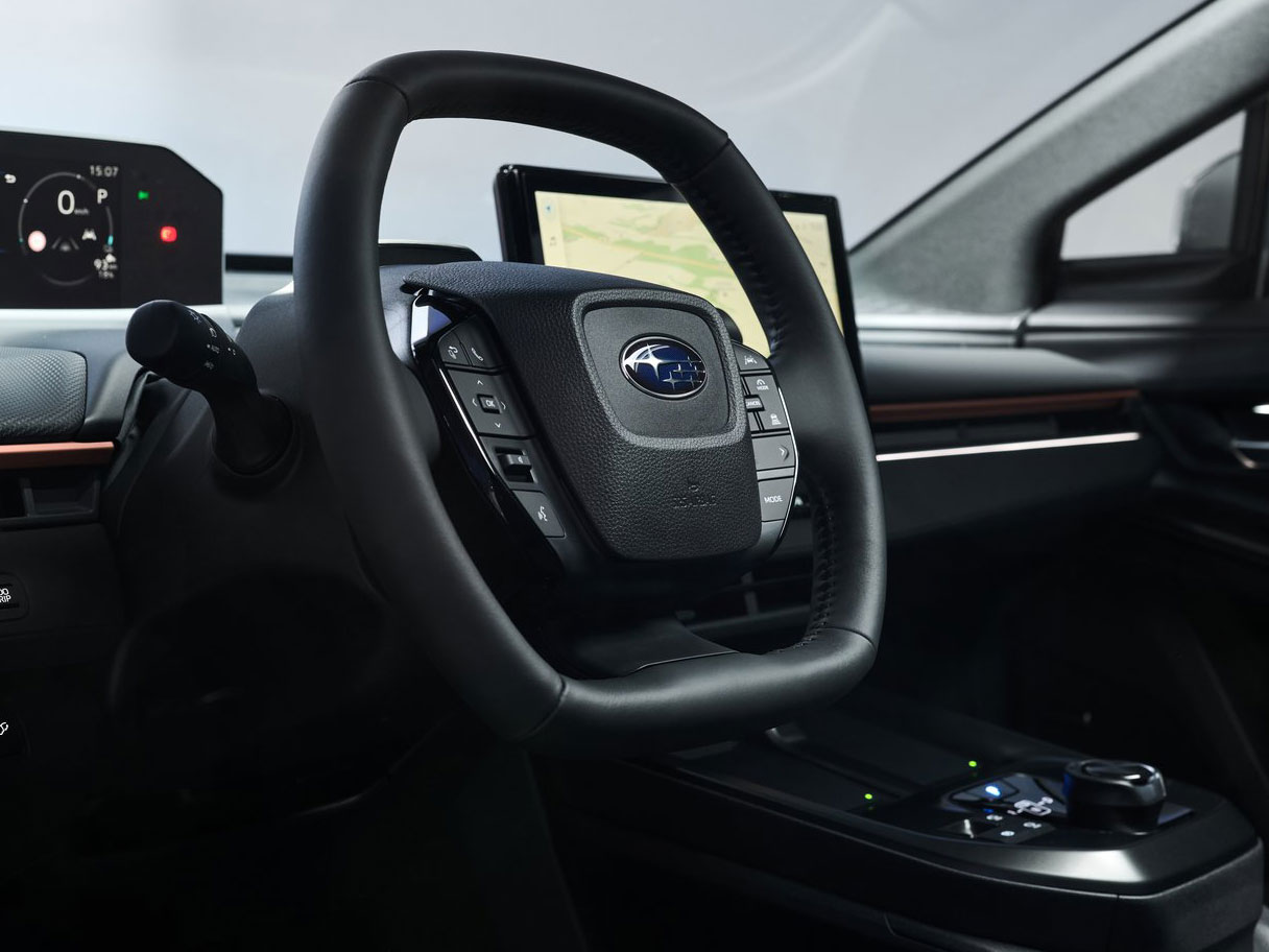Interiören har en 14-tums vertikal skärm och en digital instrumentpanel. Påminner om Toyota, men Subaru har sin egen utrustningsdesign. Sportversionen har en uppvärmd ratt, klädsel med fuktmotstånd och ett system för panoramavy. GT har ett panoramatak, ventilerade framsäten, digitalt backspeglar och Harman Kardon ljudsystem.