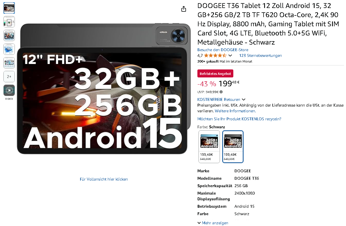 DOOGEE T36 Android 15 Tablet - Massiv prissänkning på 150€ hos Amazon!