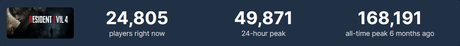 Enligt SteamDB hade Resident Evil 4 remake den 21 september som mest 50 000 spelare online. Även om hela september var toppen online cirka 5 tusen personer. I skrivande stund är RE 4 online 25 tusen. Med tanke på att expansionen bara tar 4 timmar att slutföra och Steam-rabatten bara gäller fram till den 25 september, kommer online i mitten av oktober att återvända till de "gamla" siffrorna, men det är alltid trevligt att se hur lanseringen av intressant innehåll lockar spelarnas uppmärksamhet.